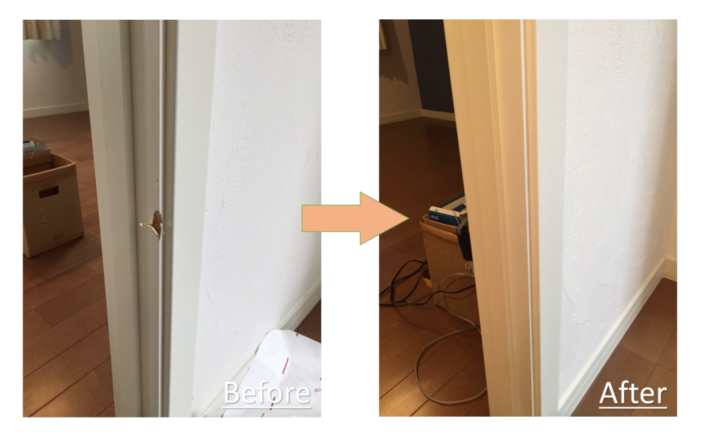 ◆建具補修 新築住宅・中古住宅にかかわらず、各種損傷を交換や張替えせずにリペアで修復いたします。新築住宅は施工時に無数の傷が発生し、中古物件におきましても無数の傷があります。それらすべてを取り換えるのは予算的にも時間的にも容易ではありません。『引っ越しの際、ぶつけて傷がついてしまった…』『建具が古く買い換えたいがお金をかけたくない…』こんなお悩みでお困りの方は是非一度、ご相談ください。個人のお客様から工務店様、引っ越し業者様など幅広くご依頼いただいております。本来の状態を再現し、ご満足いただけるように致します。 新築住宅・中古住宅にかかわらず、各種損傷を交換や張替えせずにリペアで修復いたします。新築住宅は施工時に無数の傷が発生し、中古物件におきましても無数の傷があります。それらすべてを取り換えるのは予算的にも時間的にも容易ではありません。『引っ越しの際、ぶつけて傷がついてしまった…』『建具が古く買い換えたいがお金をかけたくない…』こんなお悩みでお困りの方は是非一度、ご相談ください。個人のお客様から工務店様、引っ越し業者様など幅広くご依頼いただいております。お客様にご満足いただけるよう修復致します。 《建具の修復例》 ◆サッシ、玄関回り、外壁補修 ◆サッシ、玄関回り、外壁補修 TOTALREPAIR eco-Houseでは木部以外のアルミサッシ、樹脂サッシ、玄関扉、外壁に出来た傷等も交換せずにリペアで修復致します。玄関周りや外壁の傷は外からも見えてしまいますので家主様も気になる部分であります。しかしアルミサッシや玄関扉、外壁部分は傷があっても取り換えるには多額の金額がかかってしまい、また家主様がDIYで直そうともしても金属部の補修は非常に難しいです。当社では極力目立たたないように、予算内にて施工させていただきます。 TOTALREPAIR eco-Houseでは木部以外のアルミサッシ、樹脂サッシ、玄関扉、外壁に出来た傷等も交換せずにリペアで修復致します。玄関周りや外壁の傷は外からも見えてしまいますので家主様も気になる部分であります。しかしアルミサッシや玄関扉、外壁部分は傷があっても取り換えるには多額の金額がかかってしまい、また家主様がDIYで直そうともしても金属部の補修は非常に難しいです。 当社では極力目立たたないように、予算内にて施工させていただきます。 《サッシ、玄関回り、外壁の補修例》 《サッシ、玄関回り、外壁の補修例》 《建具・サッシ・玄関回り補修料金目安》 《建具・サッシ・玄関回り補修料金目安》 ※上記価格は参考価格になります。※傷のサイズ・素材等によって価格は変動致します。 ※上記価格は参考価格になります。※半日作業は100円玉程度の凹み、えぐれ12箇所まで 1日作業は100円玉程度の凹み、えぐれ24箇所までが目安となります。 ※上記価格は参考価格になります。※半日作業は100円玉程度の凹み、えぐれ12箇所まで 1日作業は100円玉程度の凹み、えぐれ24箇所まで が目安となります。 《対応素材》 ・木製品例)フローリング、建具、家具等・アルミ製品例)アルミサッシ、窓枠、ベランダのアルミ部分等・タイル製品例)浴槽、トイレ、玄関部分等・プラスチック製品・外壁上記素材は例になります。こんな素材できるのかな…とお困りの方もお気軽にご相談ください!お見積もりだけでも対応致します。 ↓メールでのお問い合わせ、お見積もり↓ メールでのお問い合わせ、お見積もりはこちら 法人・業者様はこちら 個人のお客様はこちら お電話でのお問い合わせはこちら TOTALREPAIR eco-House 070-4798-0024 お気軽にご相談ください♪